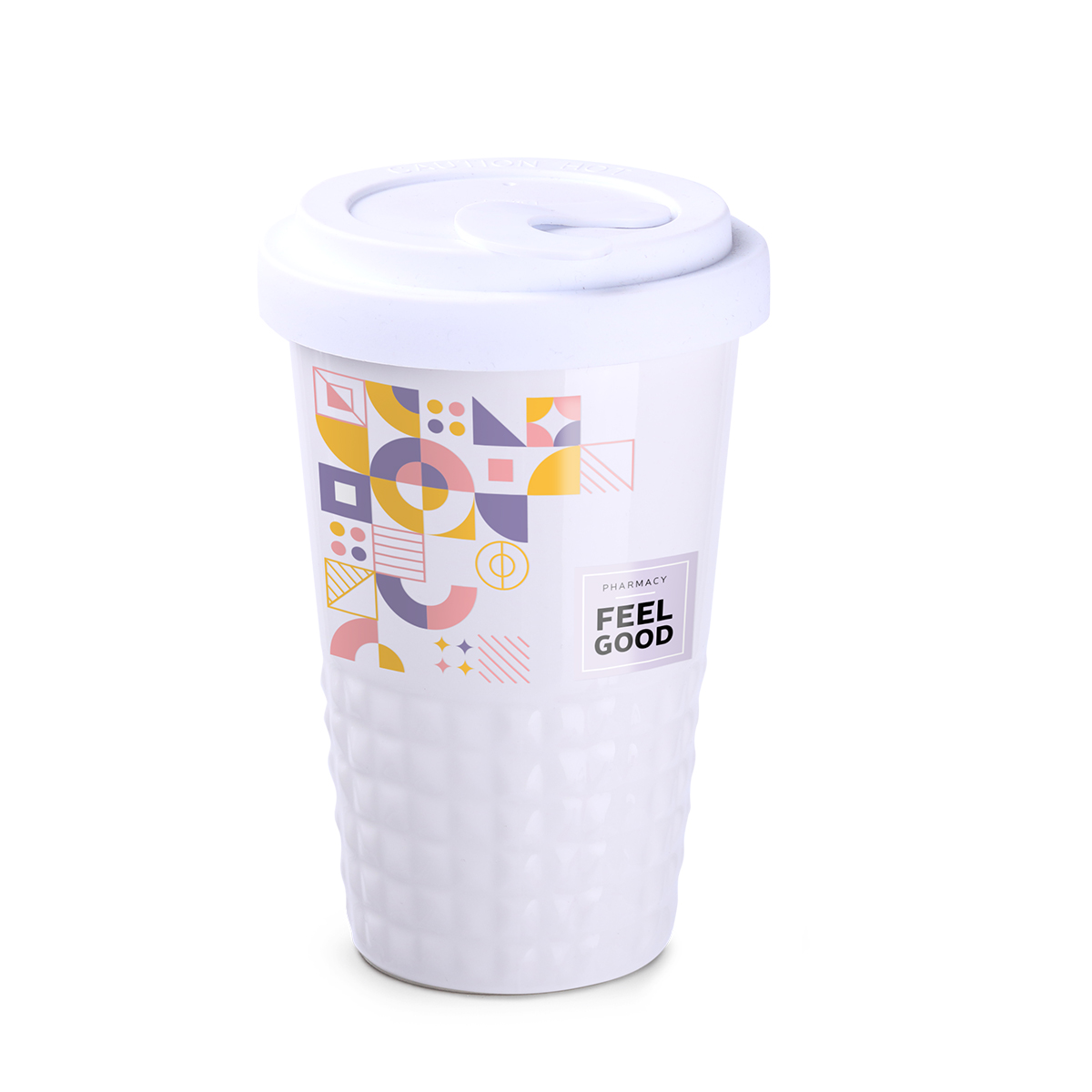 Subtle finish of the lower part of the cup in the form of symmetrical protrusions. Porcelain, double-wall, providing excellent heat insulation. Tight cover.