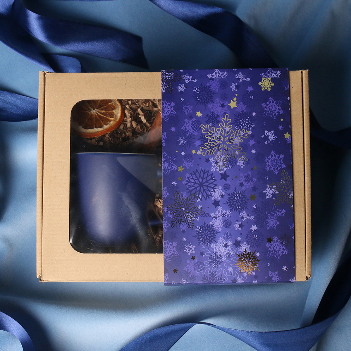 The set includes: Fiord mug red-white / navy-white / black-white with the option of customization, Divine Pralines – cranberries in chocolate (red) / blueberries in chocolate (navy) / orange peel in chocolate (black). All packed in a stylish eco cardboard box with a window. Additional customization options: print on the mug, company logo tag, ribbon or sleeve with a winter theme enriched with gold stamping.